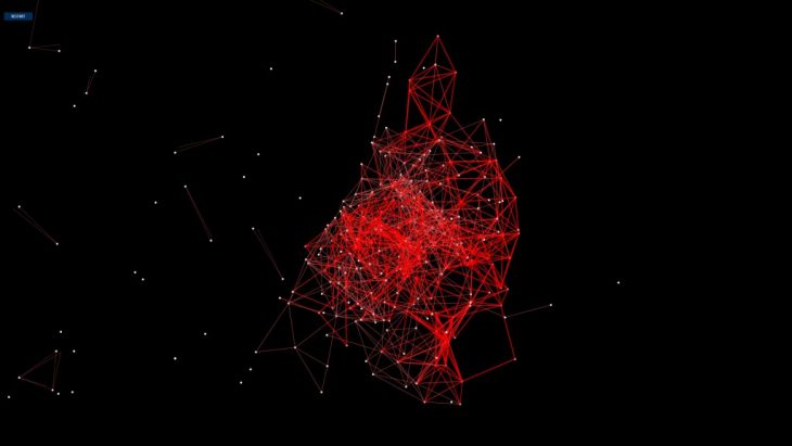 The stroke of the lines controlled by their lengths compared to the width of the screen. Shorter lines will have a darker stroke (controlled by opacity & strokeWeight).