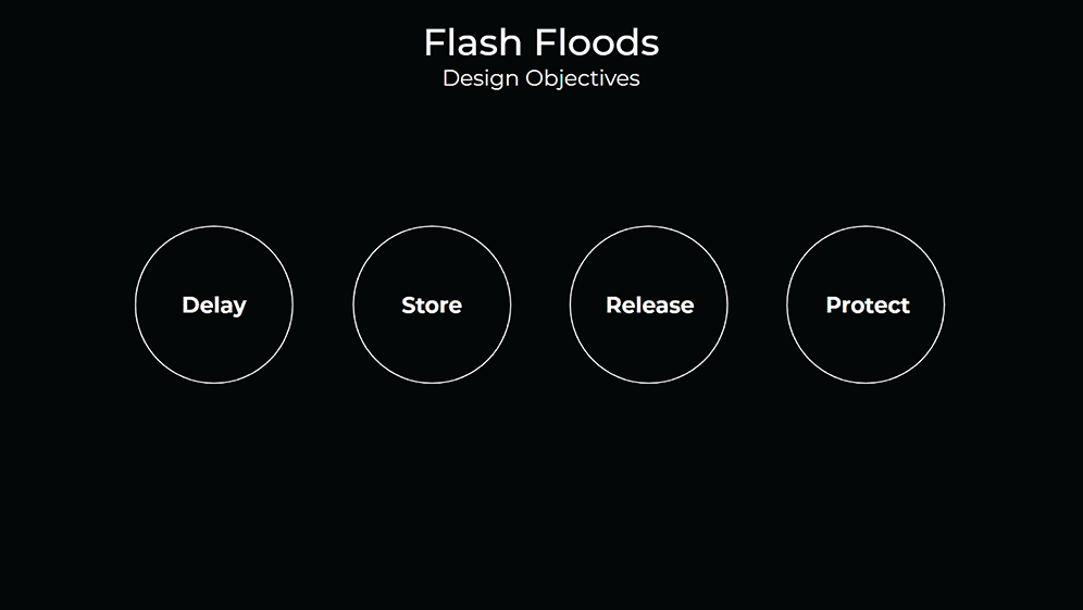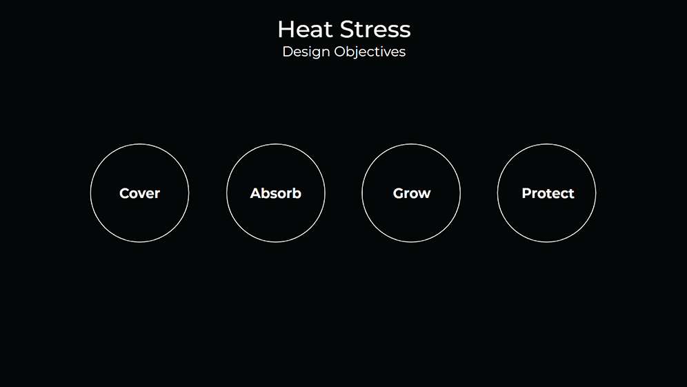 Talking about the axis of climate change is comprehend that is a complex problem where variables can be affected by multiple factors, so we synthesized the main challenges to understanding better the starting point and then we subdivide the challenges of climate change to focus only on two main axes which were heat stress and flash floods, and how the answer can be merged with a natural answer by adding biodiversity of trees and then creates a chain attractor of actors like animals, pollinators, etc, by the new green infrastructure.