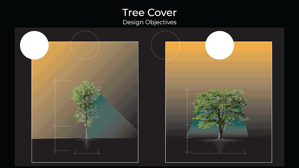 - Generates shadow to increase walkability inside the zone or area