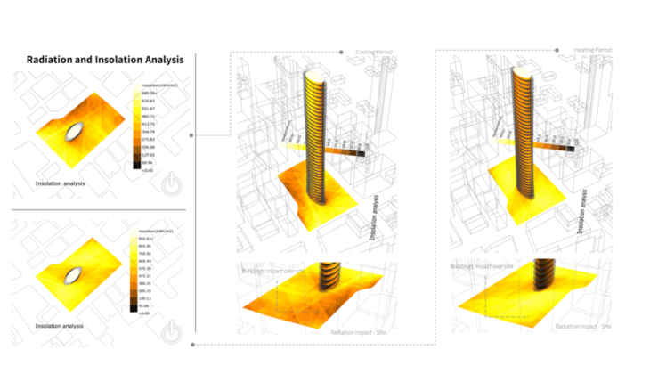 Wind analysis shows that people experience moderate wind nearby the tower throughout the year. Thermal comfort is acceptable to pedestrians.