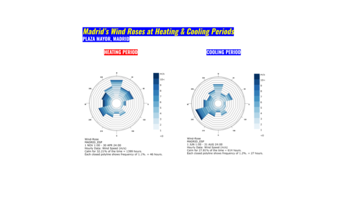 Then we reached to our wind study, for this occasion we decided to study the heating and coolong periods of Madrid. We will obtain our prevailing wind directions and speed. This will configure again our project.