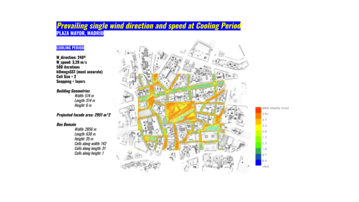 The results determined high wind speeds because of a highly urban density. This creates great streams of wind that reaches the Plaza Mayor and generate high wind tunnels. We will try for sure to locate the market at the centered and rotated to take advantage of the spaces of less wind speed.