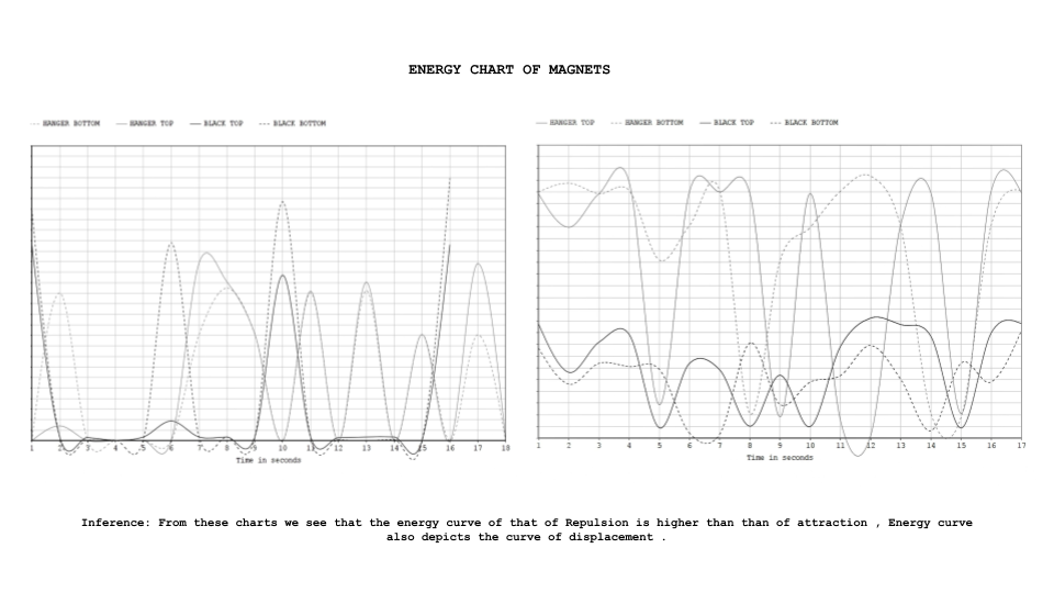 The interaction between each magnet and a suspended magnet, initiated by wind, is being illustrated in terms of transfer of energy. This simulation helps us analyze the strength and reach of the magnets, both within the field and between the field and suspended magnet. It also helps us observe the energy in joules.