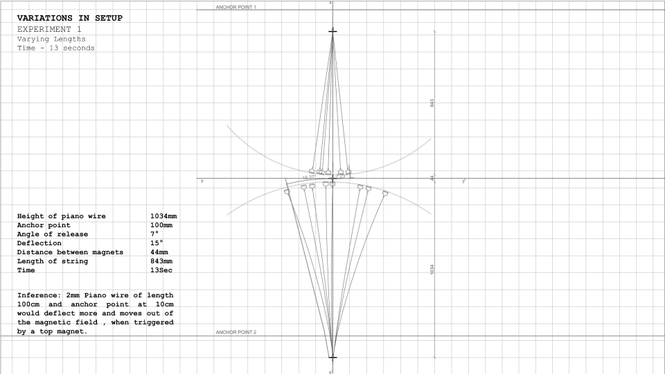 A series of experiments and tests were conducted to design the optimal setup to maximize the time period of the displacement. The following parameters were derived.