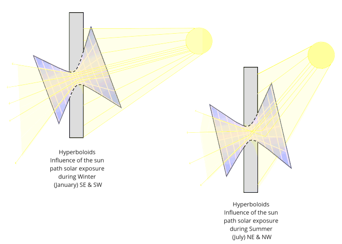 The site is exposed to maximum solar radiation towards the southeastern-western cardinal points during the month of January and the northeastern-western coordinates during the month of July.