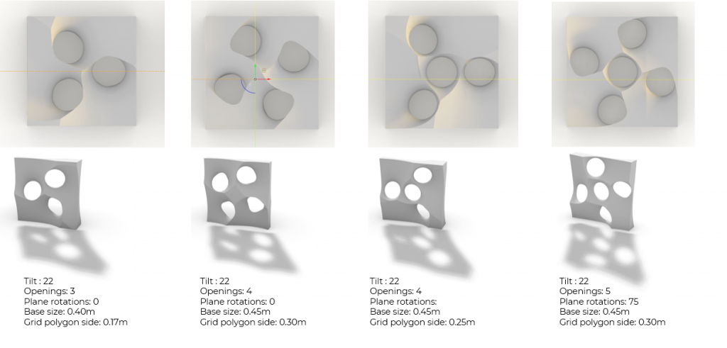 Ephemeral Repose’ aims at developing a meditative space that allows the user to experience a state of tranquility within the architectural form. The project, located in the hot and dry desert region of Dubai, intends to activate the user’s senses, namely visual and thermal. This is done by crafting aesthetic openings by employing hyperboloids as the defining geometry behind them. The perforations on the façade of the structure aim to channel Dubai’s hot sun and negate high wind speeds into the space in accordance with seasonal variations. Investigations to develop the project include experimenting with combinations of hyperboloid geometries through a physical plaster model and further optimizing them through a series of iterative enclosures by use of parametric design.