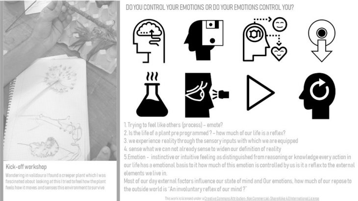 This project begins with an idea of evolution of human empathy and sense to emote with our surroundings to achieve this the project uses GSR sensors which allows us to measure sweat gland activity, which is related to emotional arousal. To measure GSR, we take advantage of the electrical properties of the skin. Specifically, how the skin resistance varies with sweat gland activity, i.e. the greater sweat gland activity, the more perspiration, and thus, less skin resistance. The most common measure of a GSR signal is not resistance, but conductance. Conductance is the opposite of resistance and is measured in siemens (Conductance = 1 / Resistance). The conductance makes the signal interpretation easier, since the greater the sweat gland activity, the higher the skin conductance.(