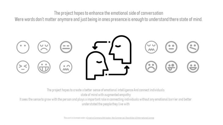 The project hopes to enhance the emotional side of conversation where verbalization do not exist and being in another’s presence is enough to understand their state of mind. The project hopes to create a better sense of emotional intelligence and connect individuals state of mind with augmented empathy