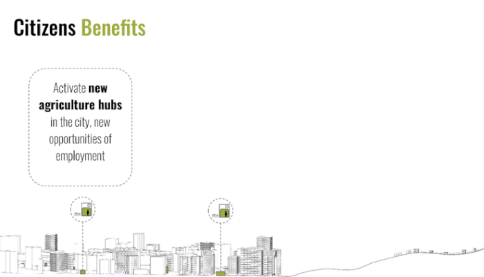 With the rise of blockchain technology it is possible to utilize it for the city and in our case for the concept of farm to market, which empowers the small farmers to sell their products directly to the market, meanwhile employ individuals who would provide services such as warehouse, transportation, and packaging that uses spare spaces in the city as mini hubs, in general, remove intermediaries so that farmers earn more, and market receive lower prices and higher quality organic products. Above all employ new individuals as suppliers who are not having any budgets.