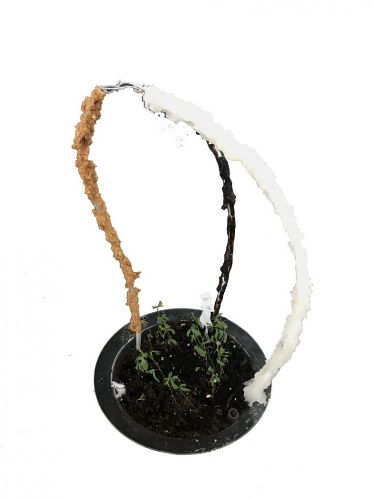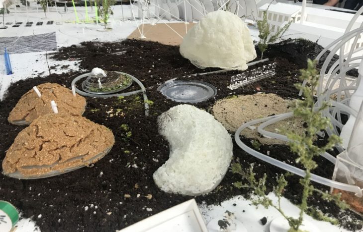 All three tests (peanut shell, coffee, salt) are used on each element of the wireframe to test the materials on bigger scale.