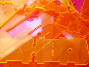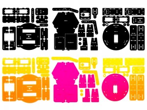 Oomlout. The structure of the robot consists of 26 parts, which need to be laser-cut, either