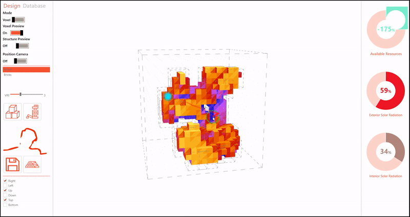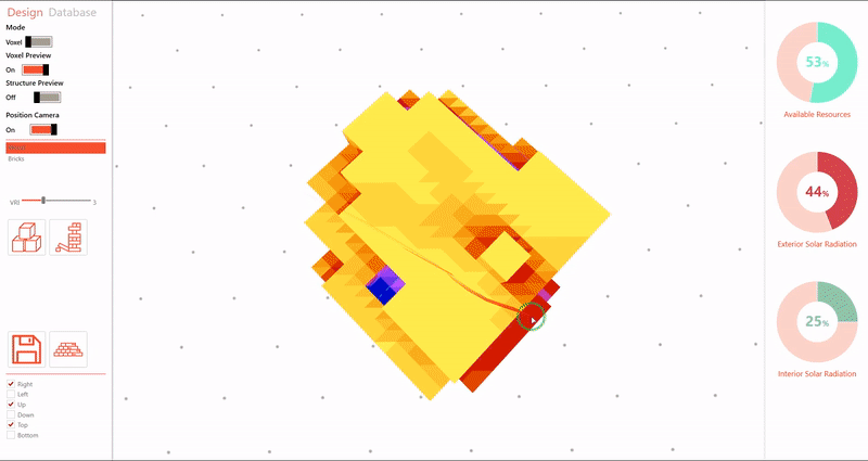 This phase is considered iterative as allows the user to constantly change and refit the shape with the voxelization rules and based on the performance charts.