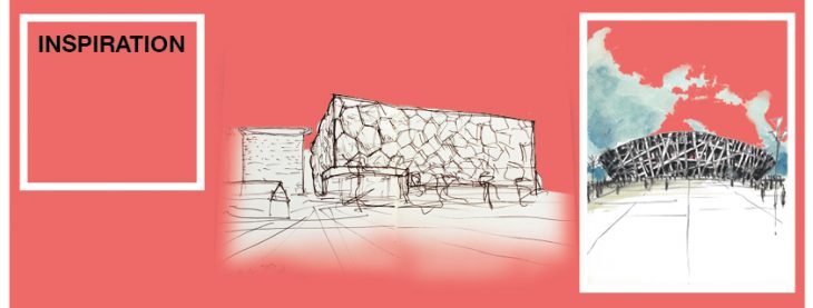 The facided nature of the mesh has a similar origen from the ‘swimming cube’ also in Beijing for the Olympic games.