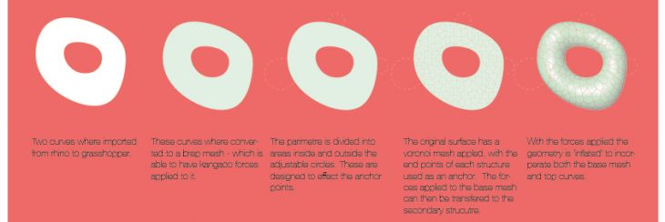 The core geometry for the assignment was dirieved from the ‘birds nest’ Olympic arena in Beijing.