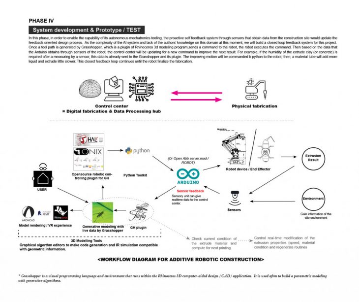 My experience of the haptic design thinking was a automate feedback system for a clay 3d printing robot arm. The sensors on the extruder of robot arm will capture the data of the site such as temperature, vibration or obstable then these data coming back to user via the Firefly tool. Then Python solve problems and send feedback data to the robot arm.