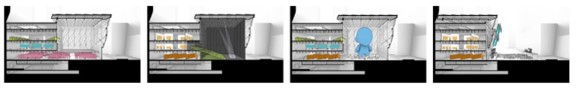 The building is intended to be flexible and can physically transform itself, based on the needs and requests of user who using the space. So that it could even change in size, on user’s demand. This method is often using for architectures that has various programs or users.