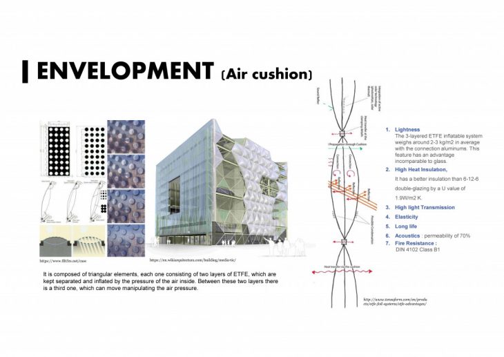 The idea of simple air dome has been developed as an envelopment of architecture. Especially, development of the material allows to have more functional and durable such as ETFE. But keep in mind that ETFE isn’t really ecological material.