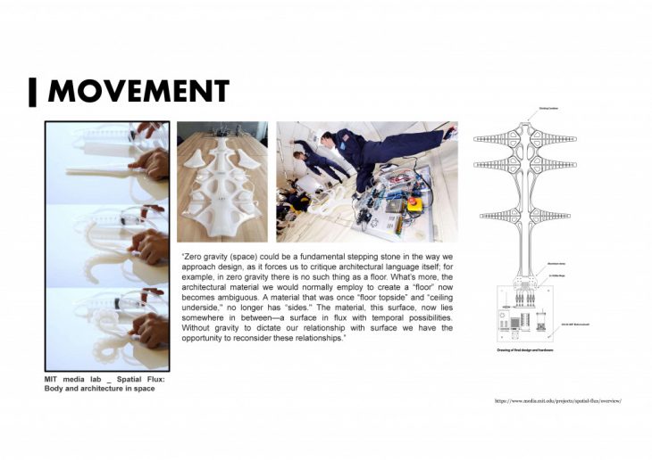 Interestingly, gravity is crucial force for human living. For long-term living in the absence of gravity, there is no weight load on the back and leg muscles, so that they begin to weaken and shrink. The loss of muscle and bone mass are one of the major effects of weightlessness. Scientists are working on a way to create gravity in a next space station. Instead of creating real gravity that pull things towards the center of the Earth, space station will be pulled towards the outside like gravity. this is called centripetal force. The reason that I’m showing this example is that the relationship between forces and architecture can be interpreted differently by its context.