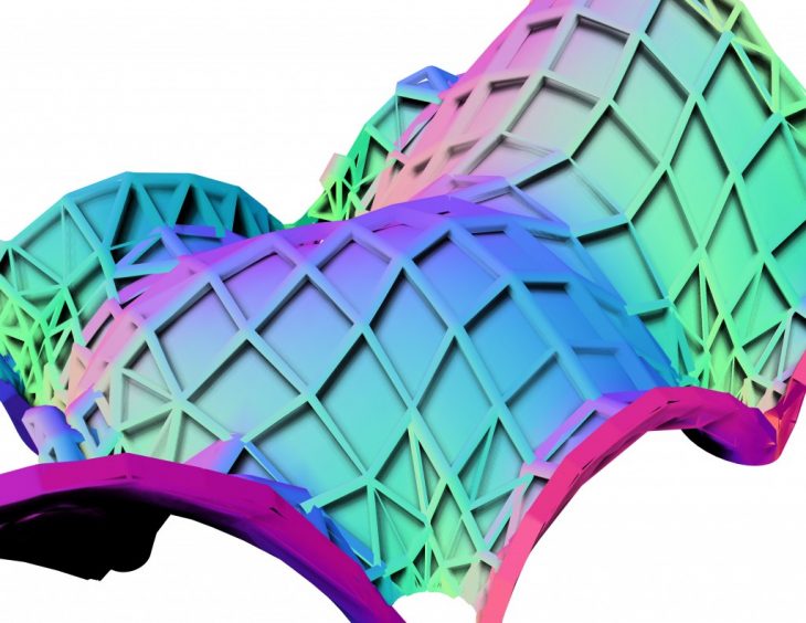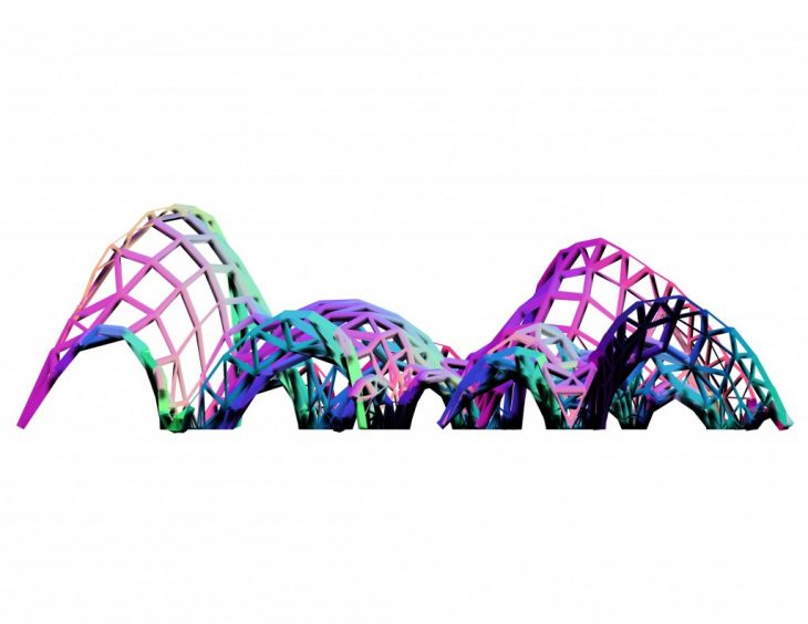 Forces of physics take over a static space laid upon the famous IAAC roof, forces such as pressure and load in the Z axis blow up a structure that offer different structural voids that offer changing paths in once still place. The structure is composed by two main elements, one being a rigid structure with it’s dropping voids that give the structure firmness- the second layer, being a much more delicate membrane that protects against Barcelona’s harsh summer sun.