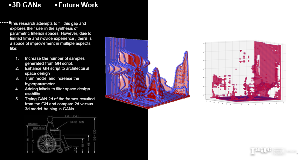 Basically, this project explores iWGAN with 3d Datasets following a planned methodology with a proven hypothesis which raises more questions about hyperparameters and dataset labeling. Hence, future work will incorporate expanding the dataset, and increasing the number of hyperparameters, while adding labels to neet special needs usability and integrated disabled functionalities. Moreover, Investigating 2d versus 3D GAN through a comparative analysis between results.