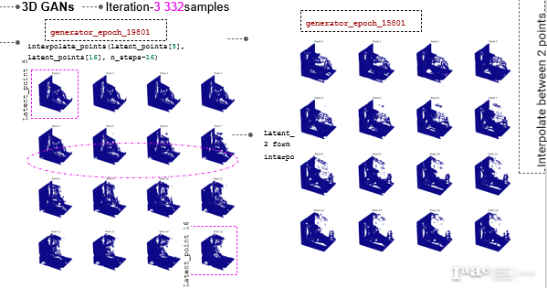 At last, the visualization of epoch 19801 delineated at the right-hand side shows promising results, as the wall articulation resembles that of the trained samples. As for the floor, volumetric definitions are formed to prove the project undertaken hypothesis.