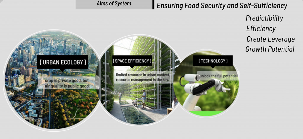 Aim of the system: to create a system that can predict ability, operational efficiency, create leverage of food production in the city and also increasing growth potential of food production system