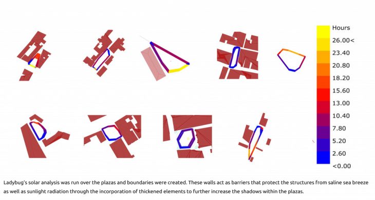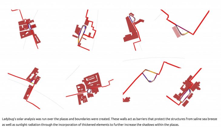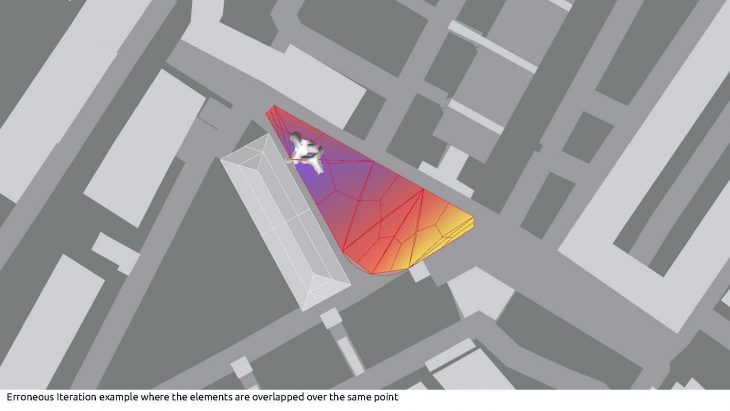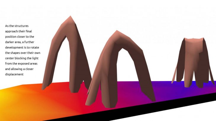 A secondary algorithm was designed to rotate the structures, allowing their lobes to interlock at various points in order to further reduce the solar exposure wherever needed.