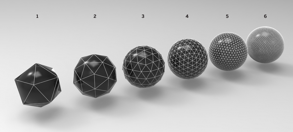 Aim of this code is to construct a Geodesic Sphere starting from an Icosahedron. This structure is comprised of a complex network of triangles that form a roughly spherical surface. The more complex the network of triangles, the more closely the dome approximates the shape of a true sphere.