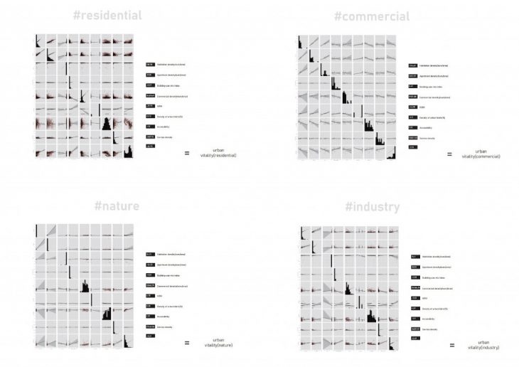 In residential, industry, and transport areas, urban fabric density( such as basic infrastructures …) is the most important to impact urban vitality for local citizens. In nature area, service density (such as a local market) is the most important, and commercial density accessibility (the distance from sites to bus/metro stations) is the most important. In a short, building a support tool is helpful to simulate strategies for low urban vitality or empty urban spaces on different urban land use.