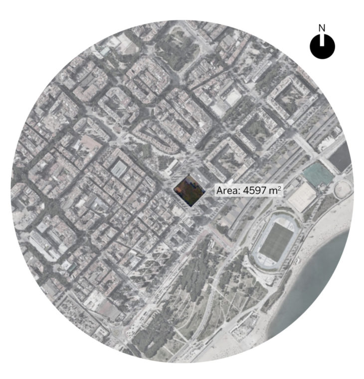 Site selection: A large empty plot of land near the seaside in a medium-density neighborhood of Poblenou.