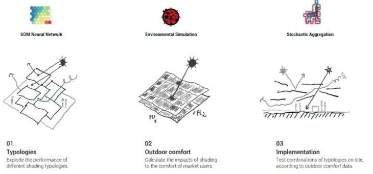 After that, conducting UTCI and Thermal Confort Perception exposed that a shading strategy would be the most important driver to establish an outdoor market that would be comfortable for both the winter and the summer.