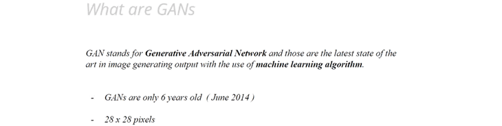 The use of Generative Adversarial Networks is a relatively young achievement within the machine learning community. One of the first papers appeared in the year 2014, as Ian Goodfellow and fellow researchers developed the TFD and MNIST datasets famous for the ai-generated hand-drawn numbers.