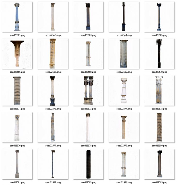 The truncation value has to be set into the script as a number between around -1.0 and +1.0. If a value close to 0.0 is placed for the truncation, the output images will be more likely to look realistic, in our case close to the input images of the real Barcelona columns.