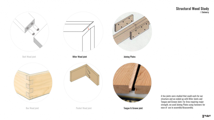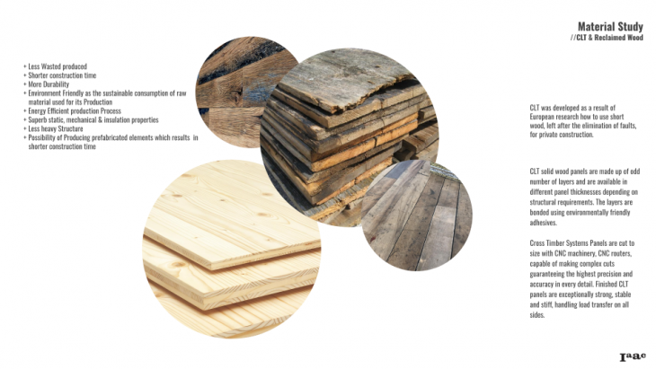 Sustainable and environmentally friendly materials – for the Substructure we chose CLT Panels which can be prefabricated. and Reclaimed Wood that is used to make the roof structure. The Wood pieces can be cut and nailed to form the cells on the site. These materials are not only sustainable way of building but also create a contrast between the artificial and Natural landscape and adds a layer of special Character and History.