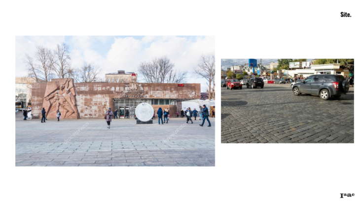 The site proposed for locating the structure is a small square next to the Barrikadnaya tube station in Moscow. Barrikadnaya means “the place of the barricades” and this name commemorates the riot of 1905 when a lot of civil protesters were severely oppressed by the police. Barricades were made of the timber refuse and the protesters were throwing the pavement stones at the police. Fragments of the historical pavement have been preserved as the part of the monument. This is the area of the mixed-use development accommodating housing, offices, retail and entertainment. It is the closest metro station to the moscow zoo and planetarium. It has a huge pedestrian traffic and the plaza in front of the station is a popular meeting point. The site is totally open from 3 sides and that makes it quite uncomfortable in terms of the precipitation and wind.