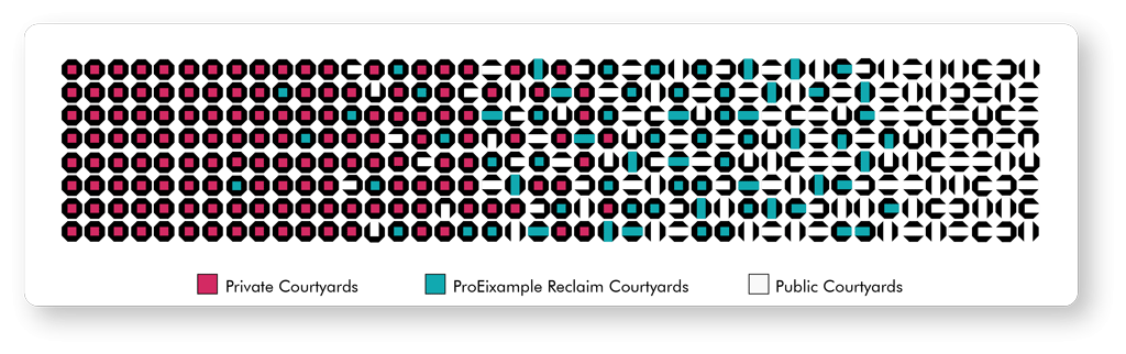The lack of public spaces and over densification of Eixample led to project by ProEixample, intending to repurpose the courtyards with gardens and communal spaces by expropriation. The municipality was able to convert some parts of over seventy blocks into gardens of different sizes, trees, and uses. This plan of expropriation turned out to be an expensive affair and the municipality had to put a halt to the initiative.