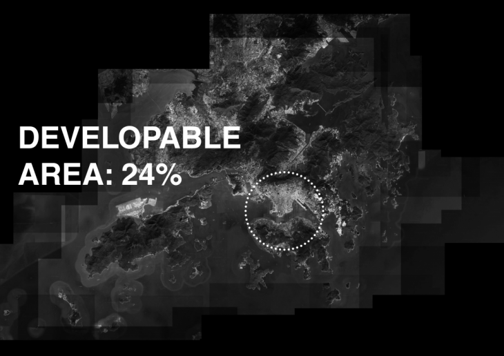 Hong Kong’s area is mostly water (60% vs 40% of land). Yet, the problem is not the lack of m2 , the problem lies in the lack of developable area, which currently represents 24% of HK and it concentrates around the Victoria Harbour.