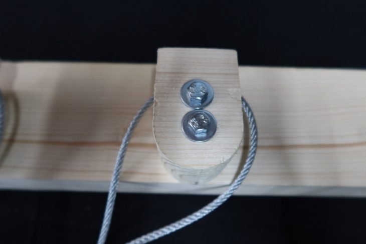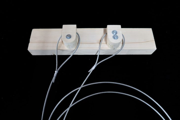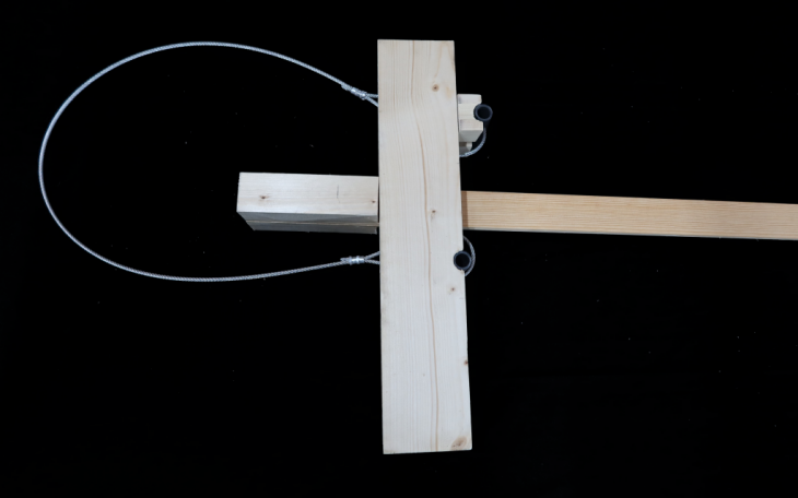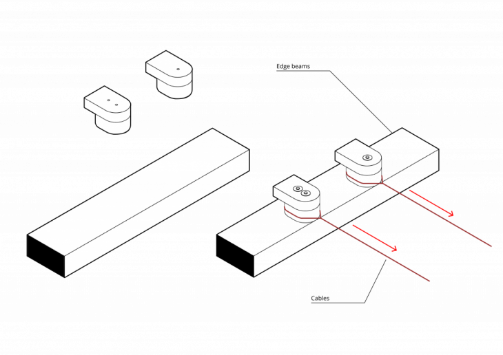 The first design consists of a simple hook. The wooden hook is designed to be fixed on the main beam and they provide a large contact area for the cable, easing the transfer of the forces. Additionally, its curved edges reduce the possibility of damaging the cable.
