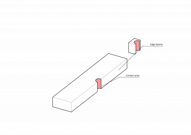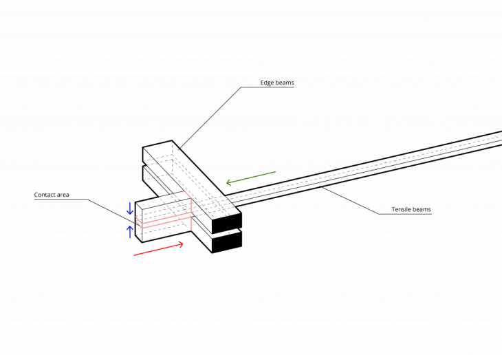 Since the most important elements are the highlighted contact areas, the parts of the wood that aren’t actively working on transferring forces can be removed, reducing the weight of the structure.