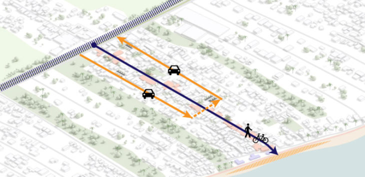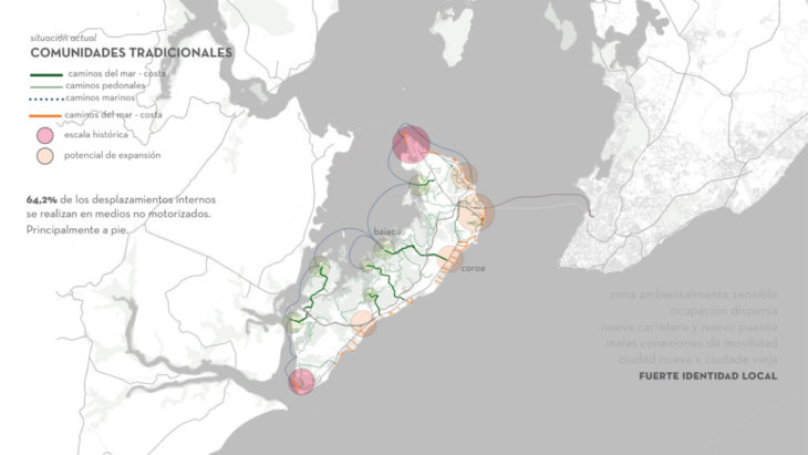 Para profundizar en este estudio, se ha optado por un recorte territorial que atraviesa la nueva autopista para garantizar la conexión entre la costa y la contracosta y promover el desarrollo y la movilidad en el sentido transversal de acceso al mar, es decir: caminos del mar entre las comunidades Baiacu e Coroa. Con el objetivo de identificar las limitaciones de la isla y explorar su potencial y desarrollar una estrategia de planificación transversal que pueda resolver y al mismo tiempo proteger.