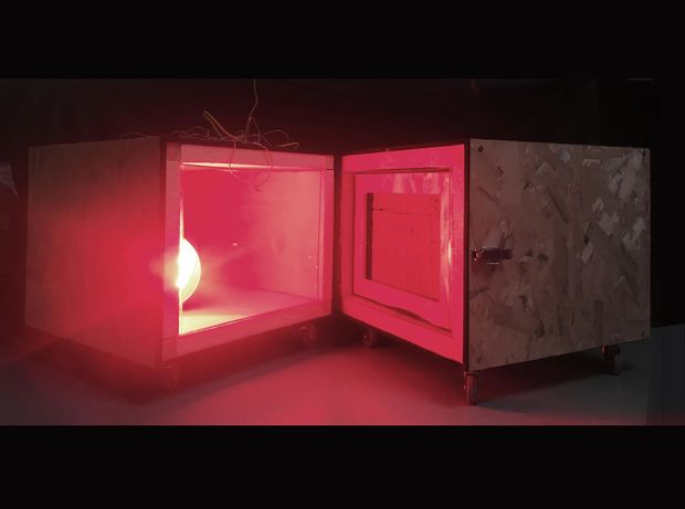 In order to test this specific research hypothesis, a thermal simulation machine was built. The machine consists of two parts: one side of the machine allows to simulate, different environmental conditions using a heat a lamp and a humidifier. In the middle, a scaled model of a wall acts as a barrier, while on the other side of the box a series of sensors connected to an Arduino board transmit data based on temperature and humidity. With this data, the goal is to test the thermal performance of a given design.