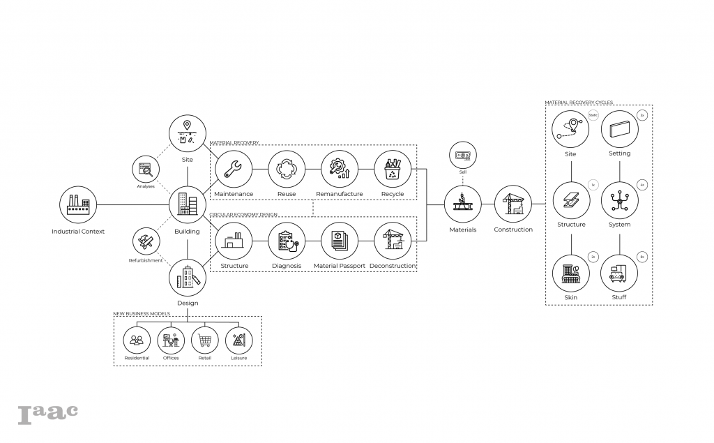 Industrial Buildings in The Urban Context // Design For The Circular Economy is a project of IAAC, Institute for Advanced Architecture of Catalonia developed in the Master in Advanced Architecture 2020/21 by Students: Alexander Dommershausen, Igwehi Inegbedion, Chirag Shah & Stefanie Eleonore Thaller, and Faculty: Ignasi Cubiñá, Ariane Lima, Sofía Battistino & María Colantoni