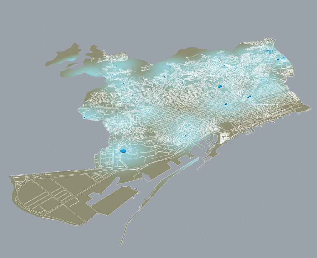 Barcelona has urban gardens around the city, these spaces are promoted by the municipality to promote the agriculture and the consume of organic products, the following image show the influence or coverage of the urban gardens plots, with this map is easy to see which areas have better accessibility to the urban gardens.