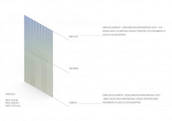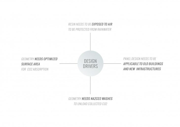 To increase the performance of the material system and the carbon dioxide absorption rate, it is necessary to create a geometry that fits the following parameters: