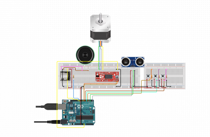 Motion sensor is used in the arduino circuit to detect movement and start the motor. With the help of our mechanical system we can move 5 hexagons in different heights with only one motor. The motion sensor is also connected to the speakers where music plays harmoniously with the movement of the hexagons when someone gets close to the facade.