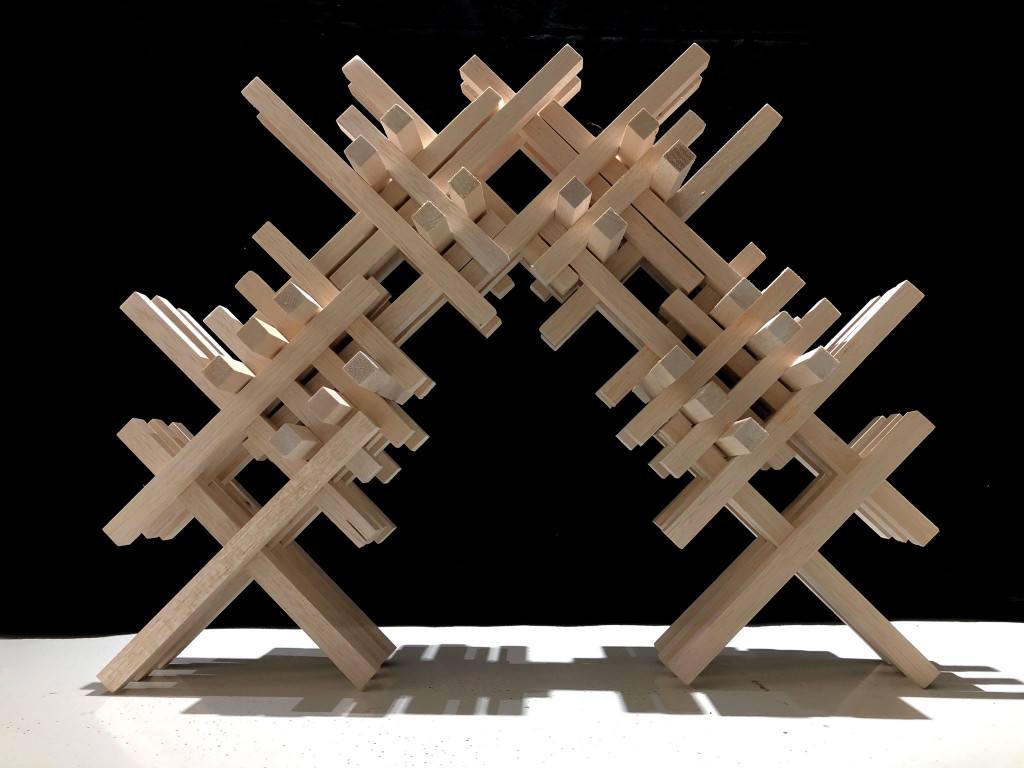 A single module composed with 6 wooden sticks was the driver for the arch. this module was the base of where to start producing and from there inform how the creation and connection of modules would work to create an arch.