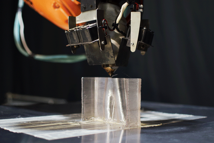 The concrete molds necessary to cast the compression elements of the design were 3D-printed with the use of IAAC’s KUKA robot.