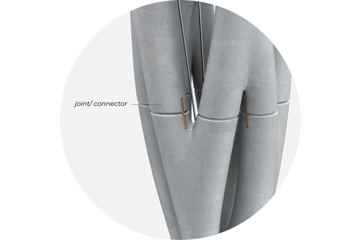 The logic of slicing the column into several elements is based on the need to be able to assemble and disassemble the molds for the concrete casting and the structural behavior of the elements and their joints based on the Karamba analysis.