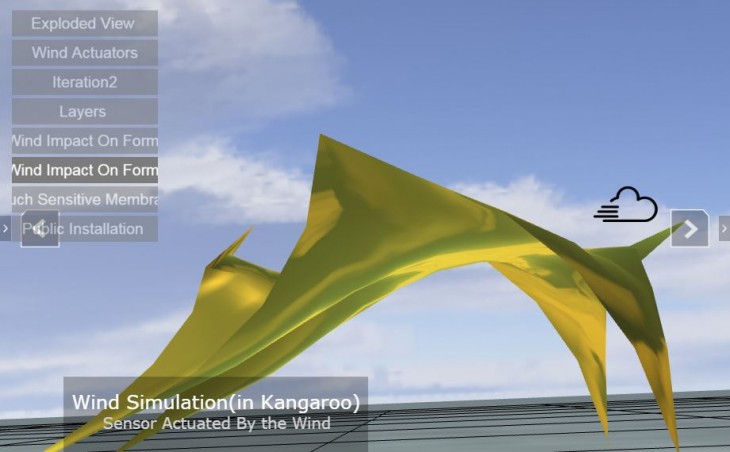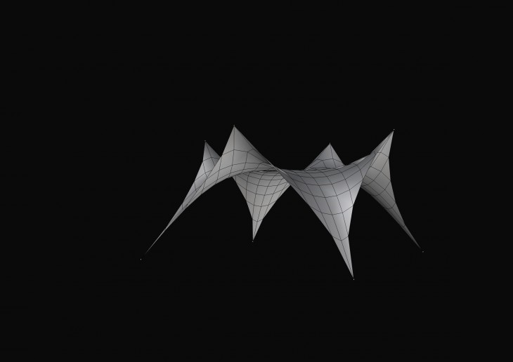 Wind simulation done with the Help of Kangaroo and Grasshopper to study the optimal structure for design decisions.