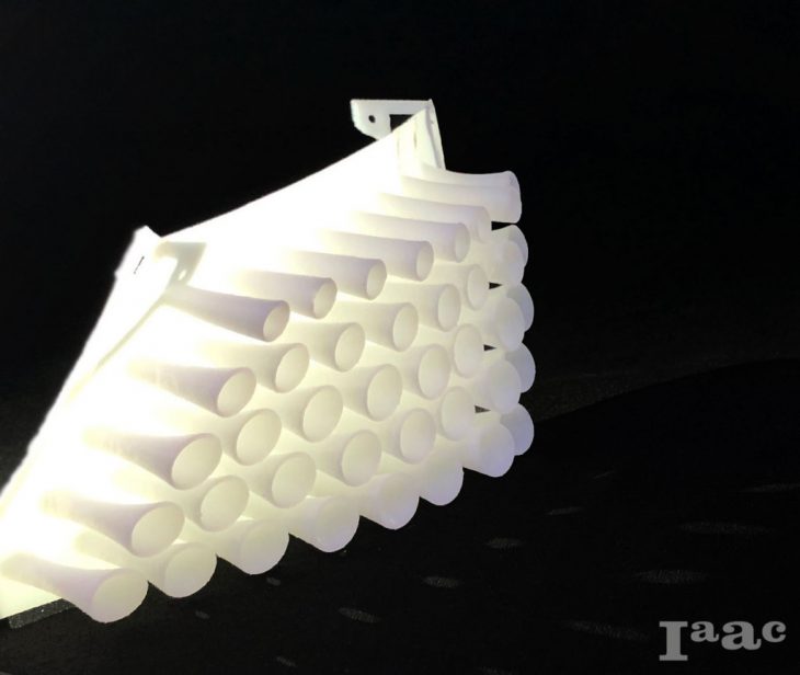 The lamp tile design was conceived as tentacles that guide the light from its source, designing the play of shadow as a contrast. 3D Printing technology allows a controlled orientation and intensity of light defined by the variable size of the openings and the dynamic form of the tentacles.